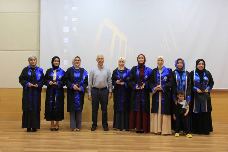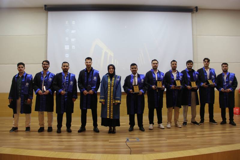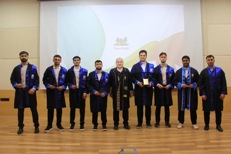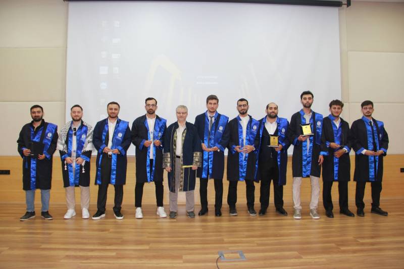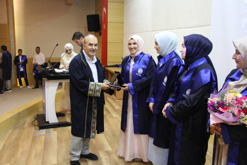 Mezuniyet etkinlikleri öğle saatlerinde Konferans Salonumuzda başladı. Dekanımız Prof. Dr. Hasan Meydan, burada yaptığı kısa selamlama konuşmasında mezun öğrencilere ve onların ailelerine hitaben duygularını paylaştı. Ardından öğretim üyeleri tarafından öğrencilere plaket takdimi gerçekleştirildi. Ardından öğretim üyeleri tarafından öğrencilere plaket takdimi gerçekleştirildi.