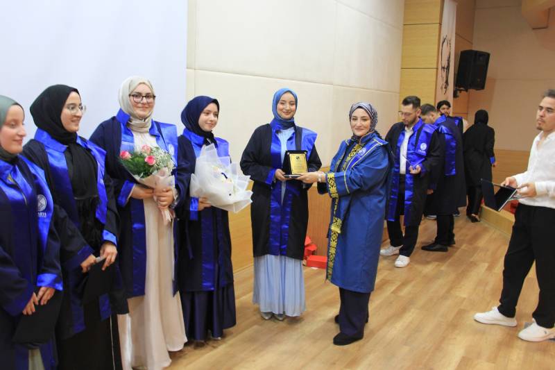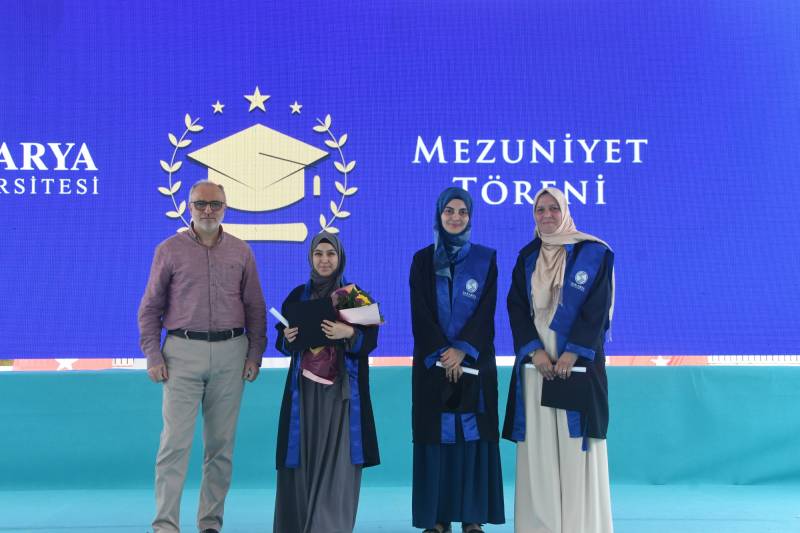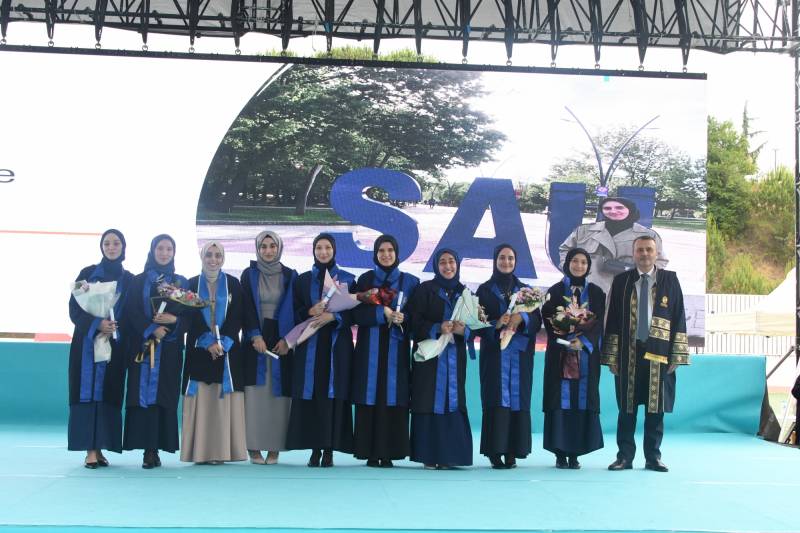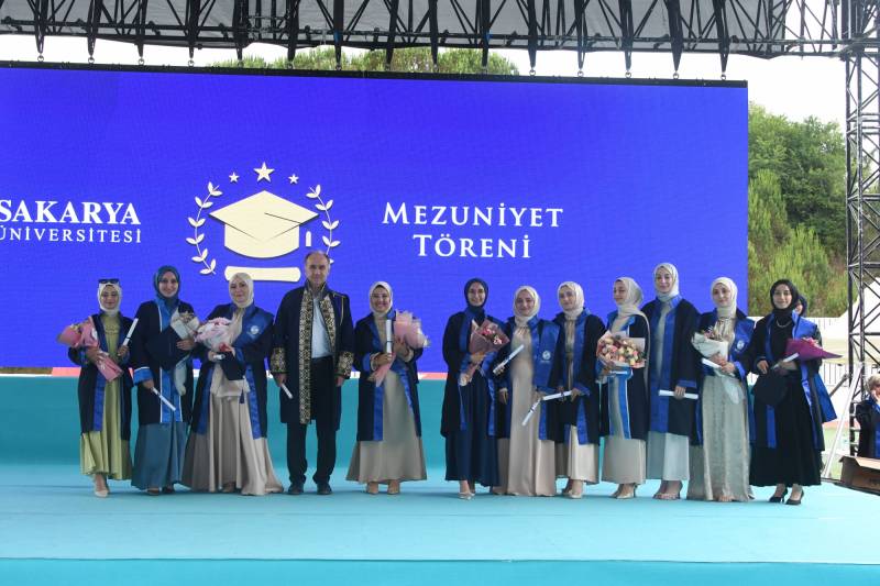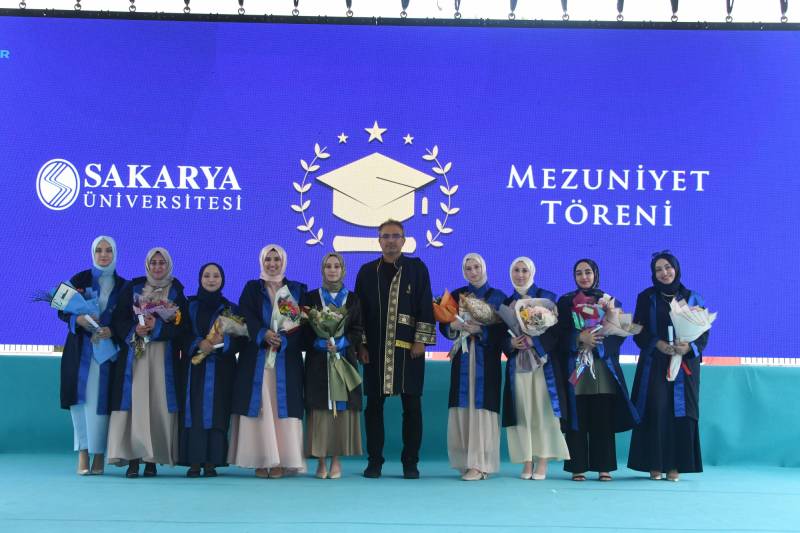 Konuşmaların ardından sahneye çıkan mezun öğrencilere, diplomaları fakülte öğretim elemanları tarafından takdim edildi. Serdivan İlçe Müftüsü Abdulsamet Erkul’un duasıyla tören manevi bir atmosfer içinde tamamlandı. Program, geleneksel kep atma ile sona erdi.