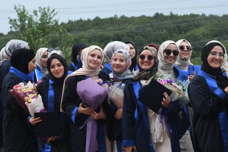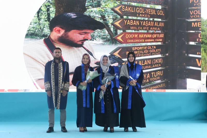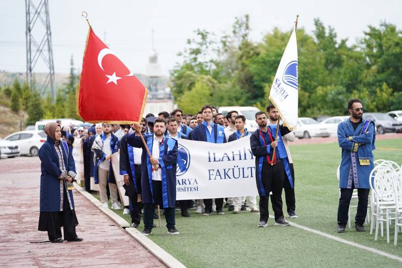 Mezuniyet Töreni ise Sakarya Üniversitesi Stadyumu’nda gerçekleştirildi. Törene Rektör Yardımcıları Prof. Dr. Mehmet Barış Horzum ve Prof. Dr. Halit Yaşar, Dekanımız Prof. Dr. Hasan Meydan, Hukuk Fakültesi Dekanı Prof. Dr. Şafak Narbay, İlahiyat Fakültesi Dekan Yardımcılarımız Doç. Dr. Muhammed Ali Bağır ve Dr. Öğr. Üyesi Kübra Cevherli, İlahiyat Fakültesi hocaları ve öğrencilerin aileleri katıldı. Tören kortej yürüyüşü ile başladı. Saygı duruşu ve İstiklâl Marşı’nın ardından Kur’an-ı Kerîm tilavetiyle program manevi bir atmosfer kazandı.