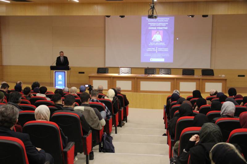 Konuşmasında zamanın yönetiminin aslında yakınlık tercihleriyle ilgili olduğunu belirten Prof. Dr. Aydemir, insanın en çok vakit geçirdiği şeyin onun gerçek önceliğini gösterdiğini dile getirdi. Modern insanın dikkat dağınıklığı, sürekli erteleme ve plansızlık sorunlarına da değinen Prof. Dr. Aydemir, “Zamanı yönetmek, kendini yönetmektir. Zaman planı olmayan insan, hayatı başkalarının akışına teslim eder.” dedi.
