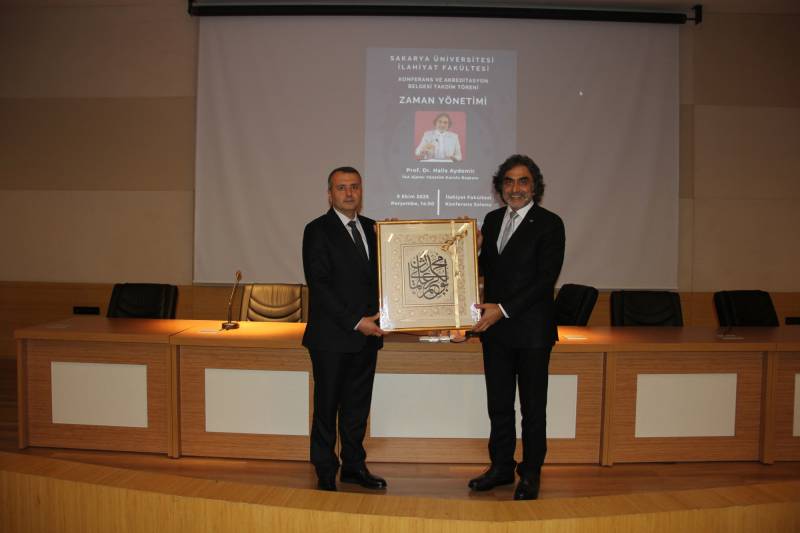 Dekanımız Prof. Dr. Hasan Meydan’ın konuşmasından sonra sözlerine başlayan Prof. Dr. Halis Aydemir, zamanın insan için bir emanet olduğunu vurguladı. Kur’ân’daki vakit ve randevu kavramlarından hareketle zamanı doğru kullanmanın hem bireysel hem toplumsal sorumluluk taşıdığını ifade etti.