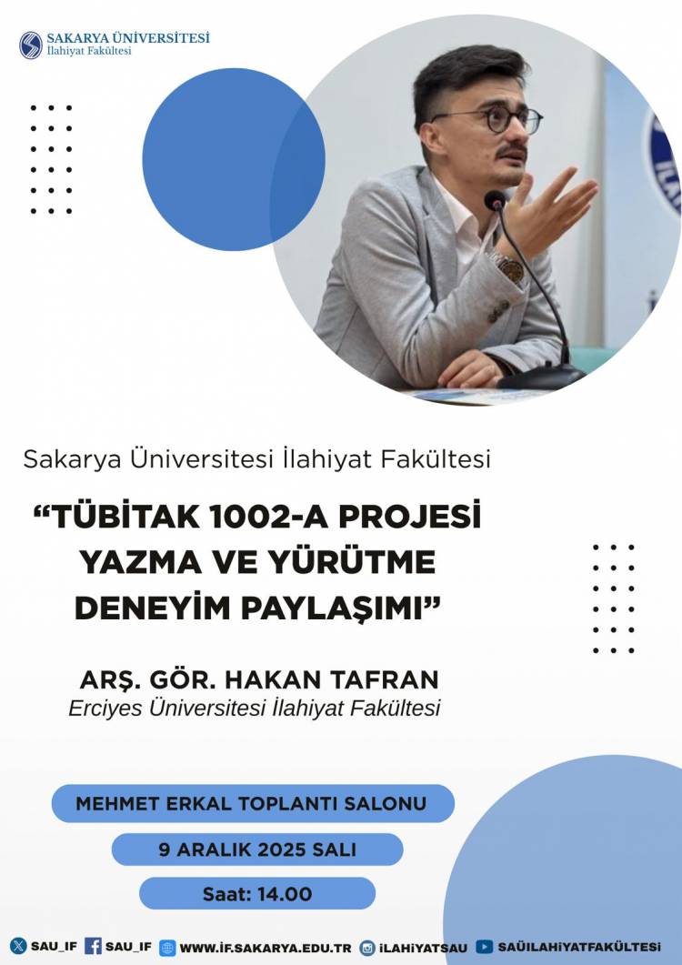 Erciyes Üniversitesi İlahiyat Fakültesi öğretim elemanı Arş.Gör.Hakan Tafran tarafından verilecek olan “TÜBİTAK 1002-A Projesi Yazma ve Yürütme Deneyim Paylaşımı”konulu seminer 9 Aralık 2025 Salı günü saat 14:00’te Fakültemiz Mehmet Erkal Toplantı Salonunda gerçekleştirilecektir.