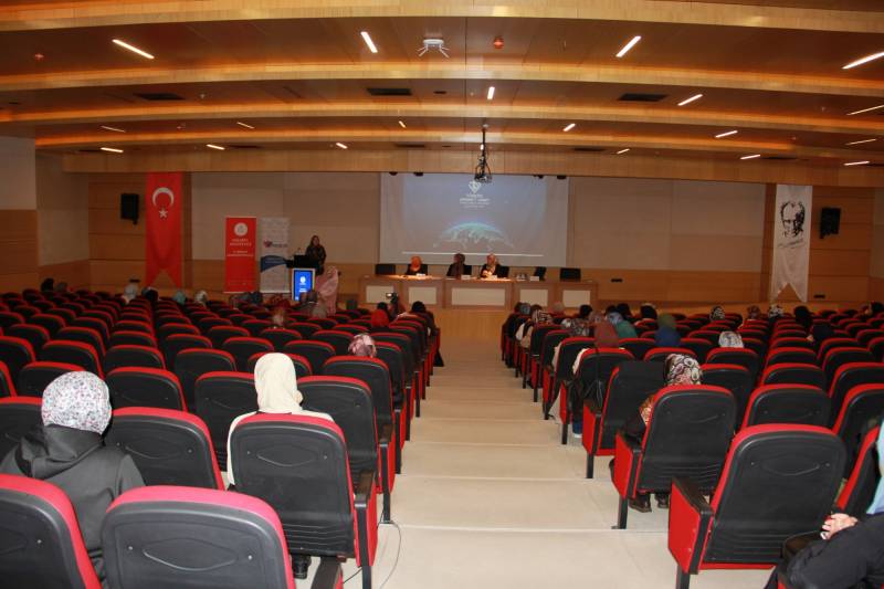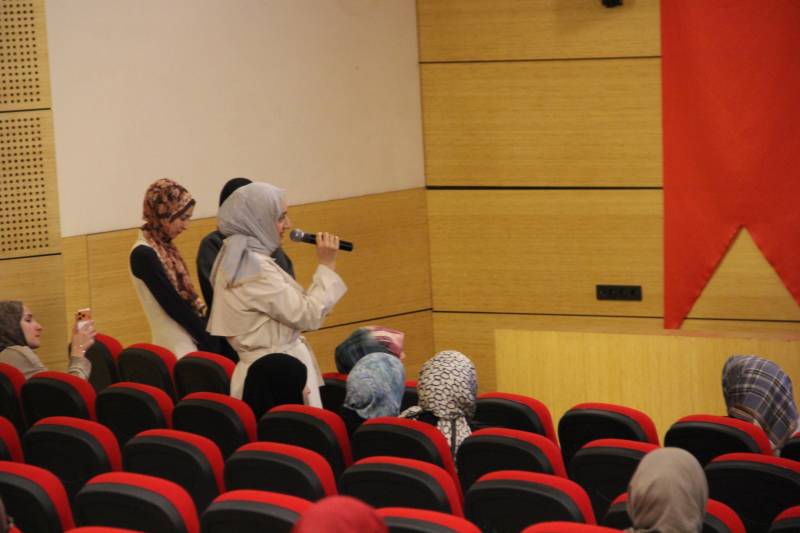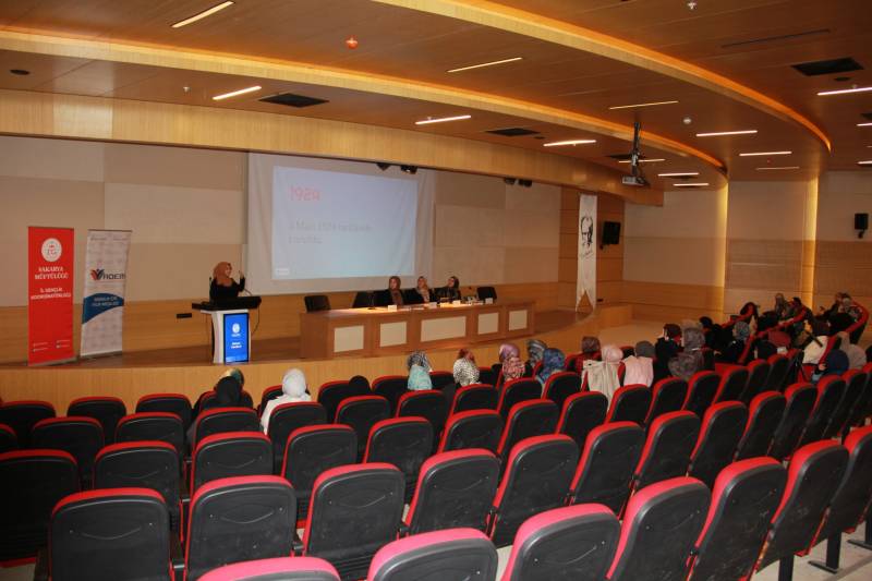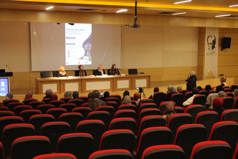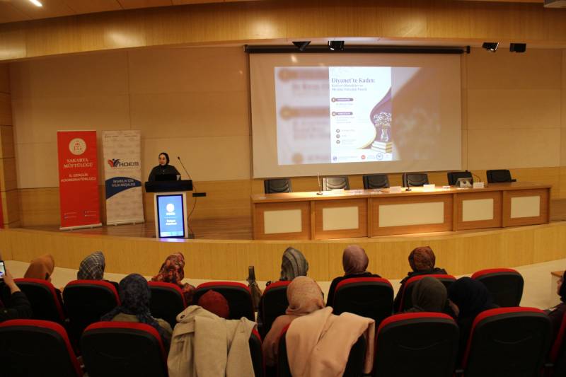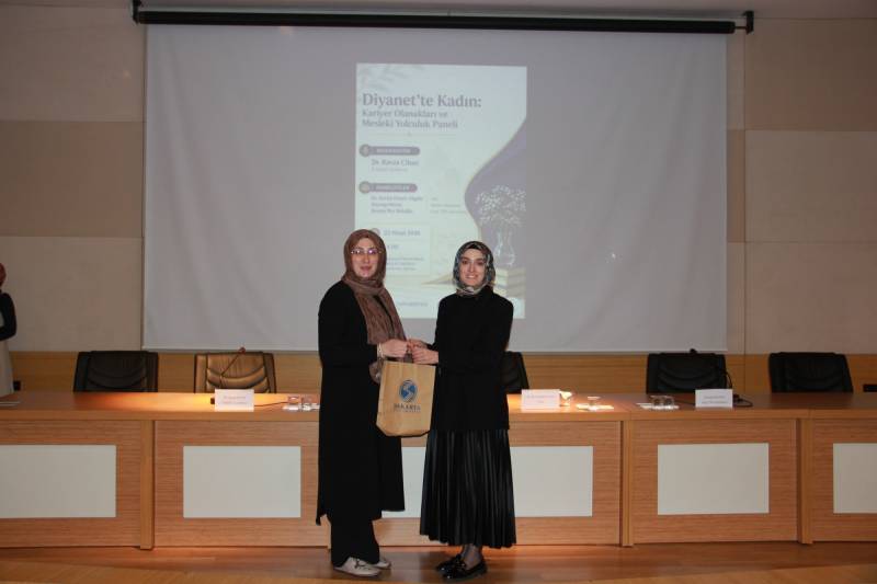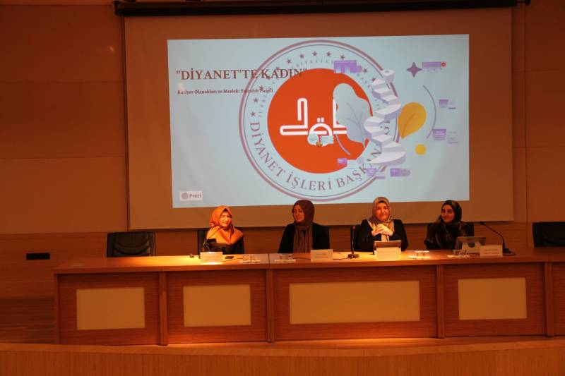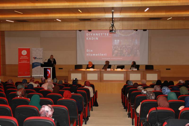 Fakültemiz ev sahipliğinde Sakaya Müftülüğü’nün katkıları, SAÜ Akademik Düşünce Eğitim ve Medeniyet (ADEM) Öğrenci Topluluğu ile SAÜ Diyanet Gençlik Öğrenci Topluluğu işbirliği ile “Diyanet’te Kadın: Kariyer Olanakları ve Mesleki Yolculuk” adlı panel 22 Nisan 2026 Çarşamba günü Konferans Salonumuzda gerçekleştirildi. Açılış konuşmalarını Fakültemiz Dekan Yardımcısı Dr. Öğr. Üyesi Kübra Cevherli ve İslam Tarihi Anabilim Dalı öğretim üyesi ve ADEM Topluluğu akademik danışmanı Doç. Dr. Esra Atmaca’nın yaptığı panelin fakültede öğrenim gören öğrencilerin, Diyanet İşleri Başkanlığı bünyesindeki kariyer olanakları hakkında bilgi edinmeleri, kadınların din hizmetlerindeki yeri ve rolü hakkında farkındalık kazanılması, meslekî deneyimlerin aktarılması yoluyla rehberlik sağlanması ve öğrencilerin kariyer hedeflerini daha bilinçli belirlemesine katkı sunulması amacıyla düzenlendiği ifade edildi.