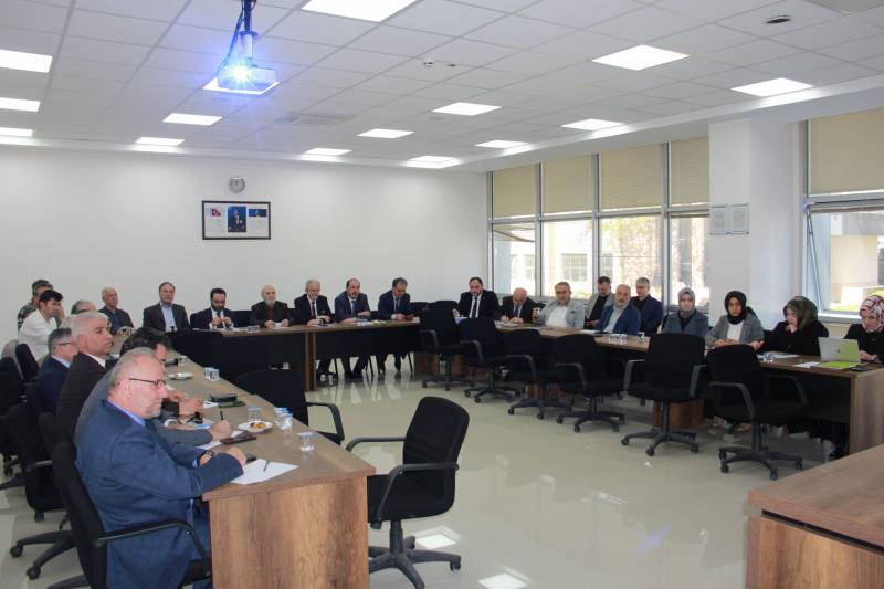 Fakültemiz Prof. Dr. Mehmet Erkal Toplantı Salonu’nda 28 Nisan 2026 tarihinde düzenlenen toplantıya Dekanımız Prof. Dr. Hasan Meydan, Sakarya İl Müftüsü Mehmet Aşık, Vakıf Başkanı Prof. Dr. Ahmet Bostancı, ilçe müftüleri, vakıf yönetimi ve İlahiyat Fakültesi öğretim üyeleri katıldı.