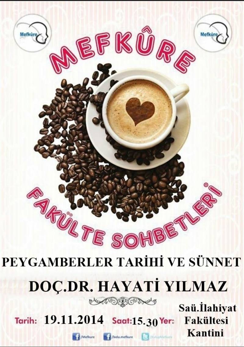 Fakültemiz Mefkûre adlı Öğrenci Topluluğu tarafından organize edilen "Fakülte Sohbetleri" etkinliği kapsamında bu hafta Doç. Dr. Hayati YILMAZ tarafından "Peygamberler Tarihi ve Sünnet" konusu ele alınacaktır.
