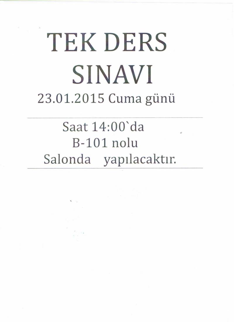 Tek ders sınavı 23.01.2015 Cuma günü saat 14.oo’ da B-101 nolu salonda yapılacaktır.