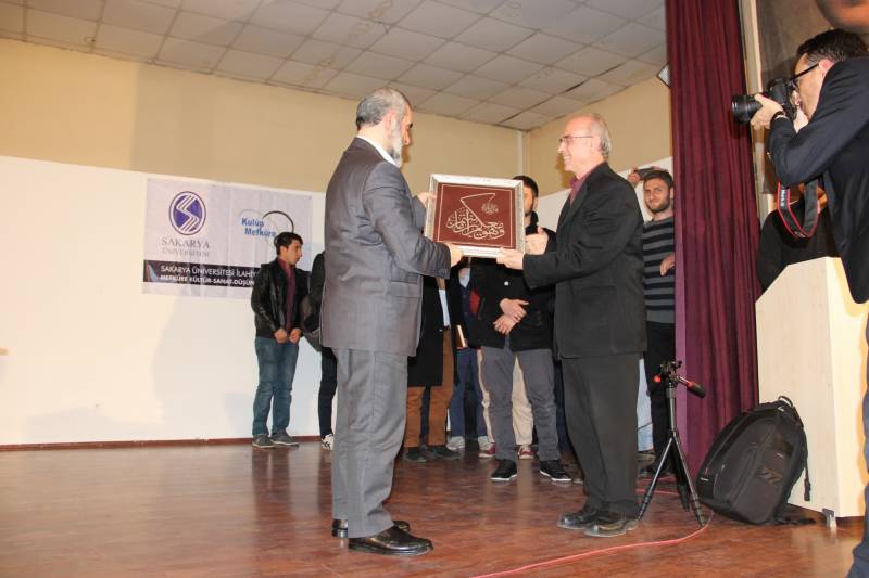 Fakültemiz Geleneksel Çarşamba Konferansları kapsamında 22 Nisan 2015 Çarşamba günü Nurettin Yıldız “Gençlerin Doğal Gündemi” başlıklı bir konferans verdi. SAÜ Mefkure Kültür Sanat ve Düşünce Topluluğu tarafından gerçekleştirilen konferansta konuşan Yıldız, gençlerin doğallığından kopmaması gerektiğini ve eğer suni hayatın kahramanı olmak istiyorsa her konuda kendimize müdahale edebiliyor olmamız gerektiğini ifade etti. Bunun yanı sıra Yıldız, haram yiyecekler konusunda dikkat edilmesi gerektiği, modern hayat ile yaygınlaşan iletişim araçlarını nasıl ve ne derece kullanılacağı üzerinde durdu. Programın sonunda Yrd. Doç. Dr. Abdullah Özcan tarafından konuşmacı Nurettin Yıldız’a hediyesi takdim edildi.