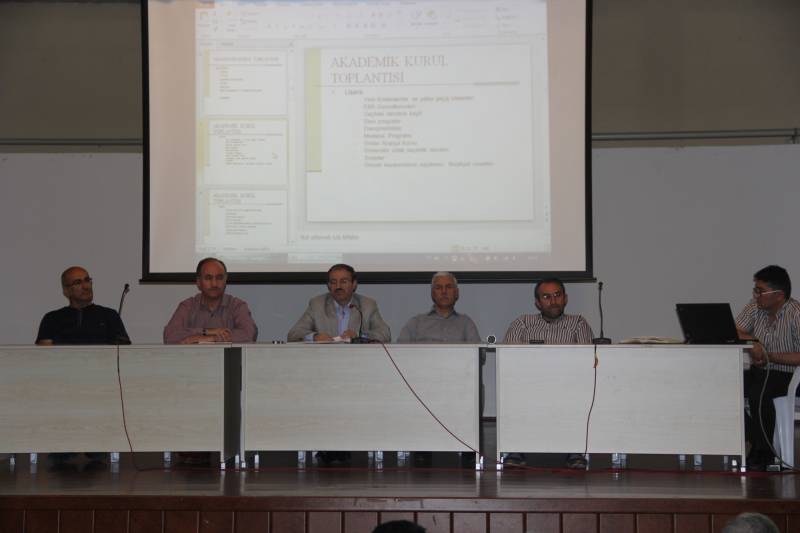 30 Haziran Çarşamba 2015 Saat 14:00’te Hakkı Ekşi Konferans Salonundan yapılan İlahiyat Fakültesi Akademik Kurul Toplantısına, başta Dekan Prof. Dr. H. Mehmet Günay, Dekan Yardımcısı Doç. Dr. Süleyman Akkuş ile Temel İslam Bilimleri Bölüm Başkanı Prof. Dr. Ahmet Bostancı, Felsefe ve Din Bilimleri Bölüm Başkanı Prof. Dr. Fuat Aydın ve Din Kültürü ve Ahlak Bilgisi Eğitim Bölüm Başkanı Yrd. Doç. Dr. Abdullah İnce olmak üzere akademik personelin büyük çoğunluğu iştirak etti.