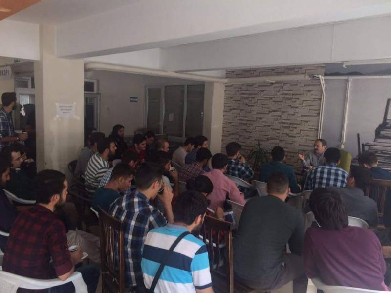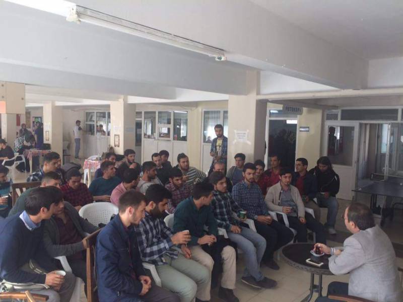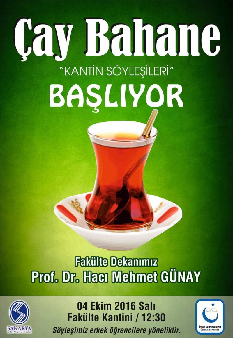 Her hafta Salı günü Fakültemiz kantininde erkek öğrencilere yönelik düzenlenen “Çay Bahane Kantin Şöyleşileri” etkinlikleri başladı. İnsan ve Medeniyet Öğrenci Topluluğu’nun tertip ettiği bu senenin ilk öyleşisinin konuğu Dekanımız Prof. Dr. Mehmet Günay hoca oldu. Konuşmasında genel olarak darbe sürecine değinen Prof. Günay, dini istismar yoluyla hareket eden yapıların bir daha çıkmaması ve İslam’a zarar vermemesi için İlahiyat eğitimini almış bireyler olarak kendilerine önemli görevler düştüğünü belirtti. Bu anlamda İlahiyat Fakültesi öğrenci ve mezunlarının aynı zamanda doğru İslamiyet’i topluma aktarmak gibi büyük bir sorumluluğu üstlendiklerini hatırlattı.