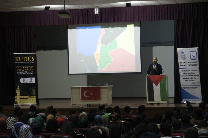 SAÜ İnsan ve Medeniyet Öğrenci Topluluğu tarafından organize edilen konferansa konuşan Orhan Buyruk, Osmanlı Devleti’nin Kudüs’e verdiği öneme değindikten sonra Kudüs’ün Müslümanların ilk kıblesi olması hasebiyle burada yaşanan sıkıntıların Arakan, Afganistan, Irak ve Moro gibi İslam ümmetinin kanayan yarası haline gelen bölgelerdeki sorunlardan daha elem verici olduğunu ifade etti. Kudüs’ün işgalden kurtulması için her Müslümanın üzerine düşeni yapması gerektiğini belirten Buyruk, kurtuluş için bir yöntem ortaya koymaya çalıştı. Daha sonra ise Buyruk, İsrail zindanlarında mahkum olarak kaldığı süre içinde yaşadığı bazı ilginç olayları paylaştı.