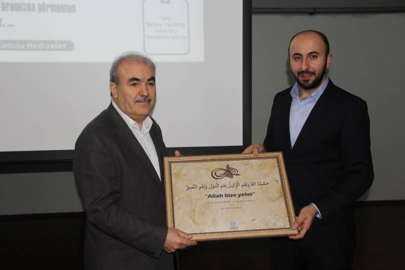 Konferansın sonunda yapılan çekilişte altı öğrenciye Kudüs konulu hediyeler verildi. Dekan Yardımcımız Doç. Dr. Mehmet MEMİŞ’in Orhan BUYRUK’a hediye takdim etmesiyle program sona erdi.