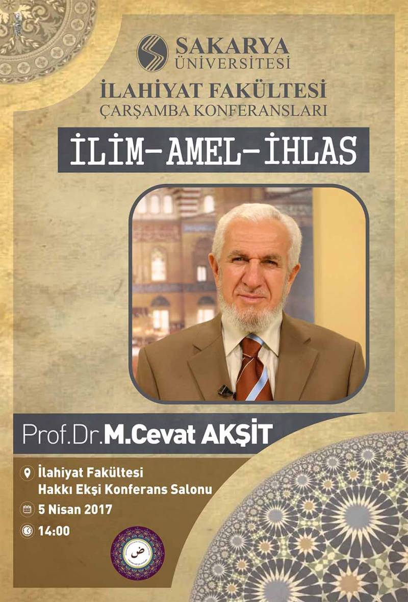 Fakültemiz Geleneksel Çarşamba Konferansları kapsamında Prof. Dr. M. Cevat Akşit tarafından "İlim-Amel-İhlas" başlıklı bir konferans verilecektir. Afiş ektedir.