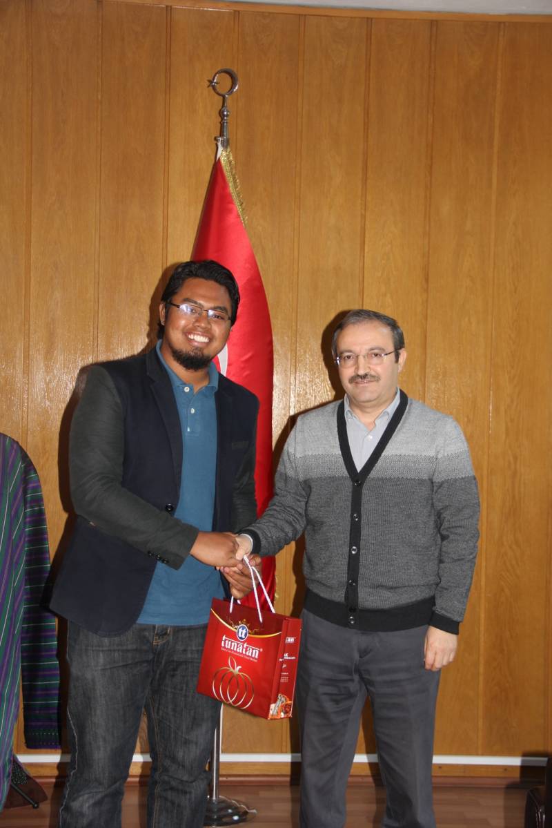 Fakültemiz, Selangor İslam Üniversitesi’nden (KUIS) Mevlana Değişim Programı kapsamında Bahar Dönemini Fakültemizde okumak üzere gelen ve ülkelerine dönecek olan Malezyalı öğrencileri için veda töreni düzenlendi. Törene Dekanımız Prof. Dr. Ahmet Bostancı’nın yanı sıra Temel İslam Bilimleri Bölüm Başkanı Prof. Dr. H. Mehmet Günay, Dekan Yardımcıları Doç. Dr. Osman Güman ve Doç. Dr. Mehmet Memiş ile Yrd. Doç. Dr. İhsan Kahveci katıldı. Törende Selangor İslam Üniversitesi’nden gelen İslam Araştırmaları Fakültesi Dekan Yardımcısı Dr. Muhammed Noor Hussin’e ve öğrencilere hediye takdim edildi. Dekan Prof. Dr. Ahmet Bostancı’ya üniversitesinden getirdiği hediye ve teşekkür mektubunu takdim eden Dr. Muhammad Noor Hussin, öğrencilerinin SAÜ İlahiyat Fakültesinden çok iyi intibalarla ayrıldıklarını, Sakarya Üniversitesi ile öğrenci değişimi yapmış olmaktan dolayı mutluluk duyduklarını dile getirdi ve önümüzdeki süreçte bu işbirliğini daha da artırmak istediklerini ifade etti. Prof. Dr. Ahmet Bostancı da Malezyalı öğrencileri ağırlamaktan dolayı çok memnun olduklarını ve ilerleyen yıllarda Malezya’dan ve başka ülkelerden bu tür programlarla daha fazla öğrencisi almayı arzu ettiklerini belirtti.