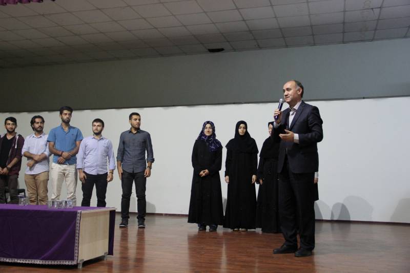 İlahiyat Fakültesi Hakkı Ekşi Konferans salonunda düzenlenen programa Dekanımız Prof. Dr. Ahmet Bostancı, Temel İslam Bilimleri bölüm başkanı Prof. Dr. Hacı Mehmet Günay, hazırlık sınıfı derslerine girecek öğretim elemanları ve hazırlık sınıfı öğrencileri katıldı. Kur'an-ı Kerim'i Güzel Okuma yarışması üçüncüsü Durmuş Bulut'un Kur'an-ı Kerim tilaveti ile başlayan programın açılış konuşmasını Dekanımız Prof. Dr. Ahmet Bostancı yaptı.