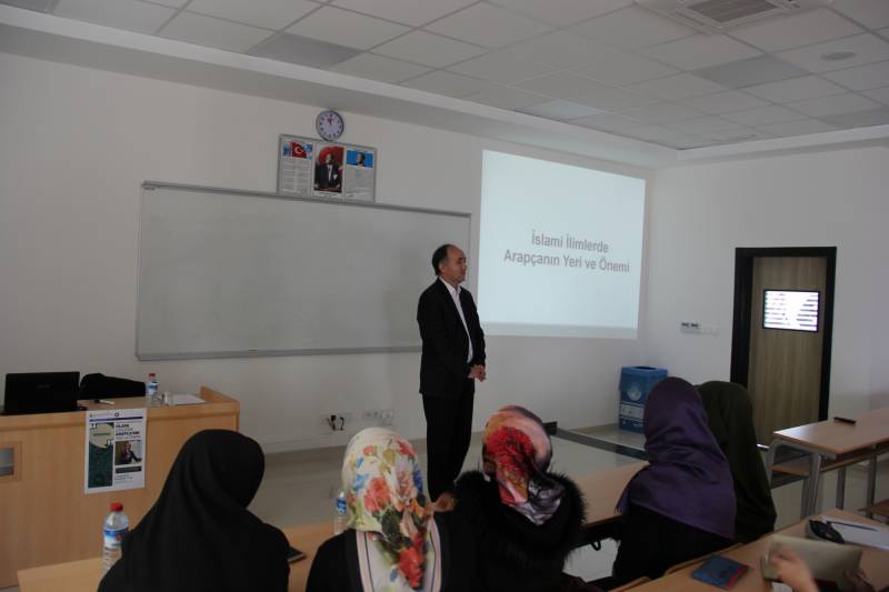Fakültemiz Arapça Dil Grubu Öğrenci Topluluğu (Multekâ lugatu’d-dât) tarafından organize edilen ve Dekanımız Prof. Dr. Ahmet Bostancı'nın konuşmacı olarak katıldığı "İslamî İlimlerde Arapçanın Yeri ve Önemi” konulu konferans Fakültemizde gerçekleştirildi.