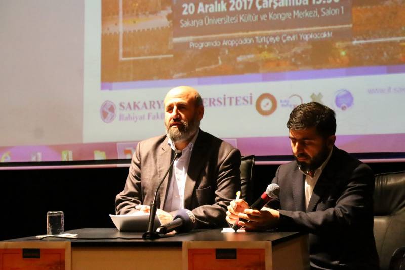 Müslümanların birbirlerini öldürdükleri söylemlerine karşı Hz. Ömer’in Kudüs’ü Fethi örneğini veren Tekruri, “Müslümanlar zorunlu olmadıkça silaha başvurmazlar. Hz. Ömer Kudüs’ü fetih edeceği zaman barışçıl bir şekilde şehrin anahtarını alabileceği için silaha başvurmadı” dedi. Dr. Tekruri, konuşmasının devamında Kudüs ile ilgili ayetlerden ve hadisi şeriflerden bahsetti.