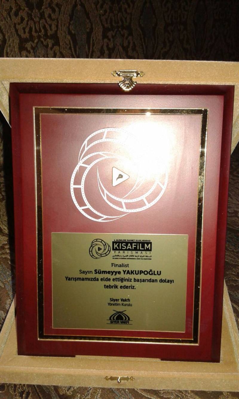 Öğrencimiz Sümeyye Yakupoğlu, Siyer Vakfı tarafından düzenlenen "4. Alemlere Rahmet Uluslararası Kısa Film Yarışması"nda 164 kişinin müracaat ettiği senaryo dalında 5 finalist arasına kalmış ve başarı plaketi almıştır. Öğrencimizi tebrik ediyor, başarılarının devamını diliyoruz.