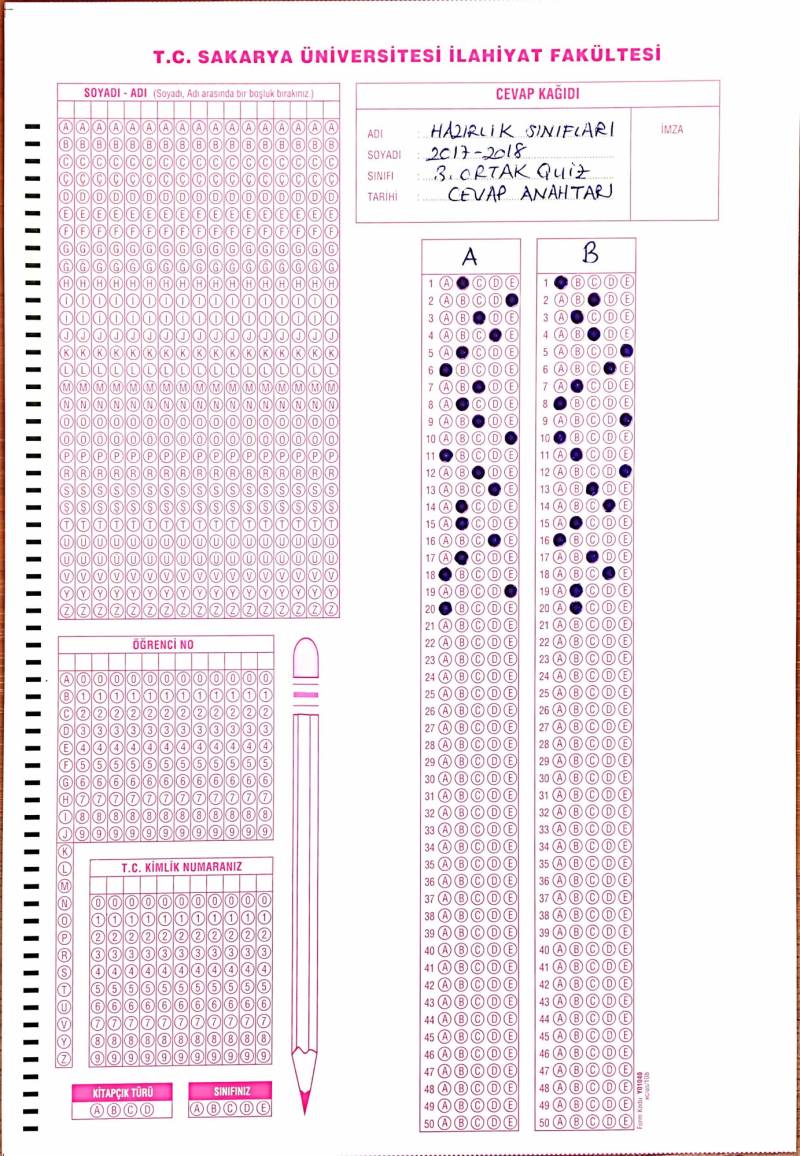 Hazırlık Sınıfları 3. Ortak Quiz Cevap Anahtarı