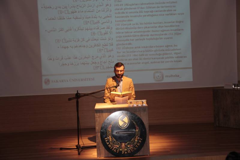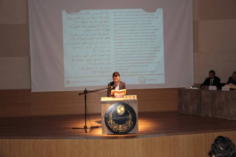 Program açılışında konuşan Sakarya Vali Yardımcısı Bekir Dınkırcı, böylesi güzel bir yarışma tertip etmelerinden dolayı Arapça Dil Grubu Öğrenci Topluluğunu ve İlahiyat Fakültesi Dekanlığını tebrik etti ve Sakarya Valisi İrfan Balkanlıoğlu’nun selam ve başarı dileklerini iletti.
