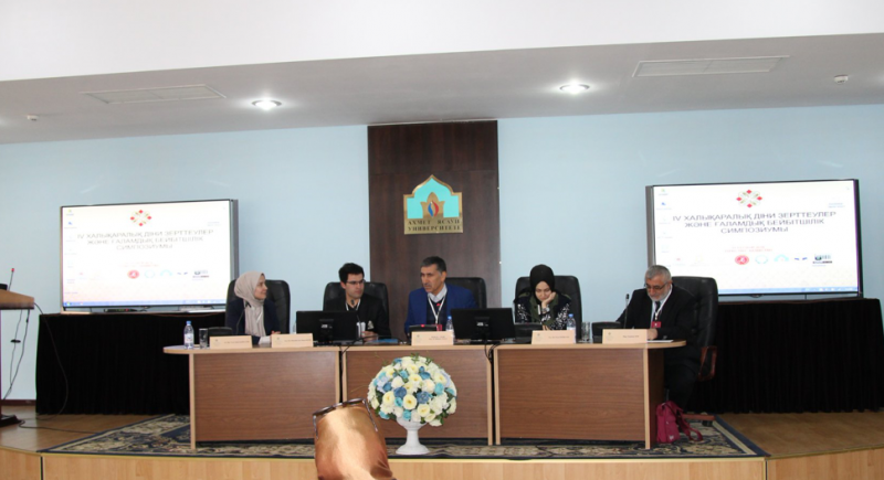 Fakültemiz İslam Mezhepleri Tarihi öğretim elemanlarımızdan Arş. Gör. Feyza DOĞRUYOL, TİMAV ve Ahmet Yesevi Üniversitesi işbirliği ile Kazakistan’ın Türkistan kentinde düzenlenen IV. Uluslararası Dini Araştırmalar ve Küresel Barış Sempozyumu’na katıldı. Doğruyol, Ahmet Yesevi Üniversitesi Kültür Merkezi’nde düzenlenen programda “Amerika’da Müslüman Zenci Bir Lider: Warith Deen Muhammed ve Bir Hareketin Dönüşüm Hikayesi” başlıklı bildirisini sundu. 3 gün süren sempozyumda Türkiye ve çeşitli ülkelerden katılan 59 akademisyen 16 ayrı oturumda “Doğu-Batı medeniyetlerinin inşasında tarih, kültür, sanat, felsefe ve din” teması altında bildirilerini sundular. Sempozyum, kapanış oturumunun ardından Hoca Ahmet Yesevi Türbesi ve Arslan Baba Türbesi ziyaretlerinden sonra sona erdi.