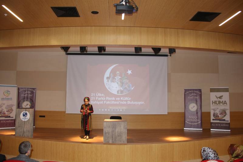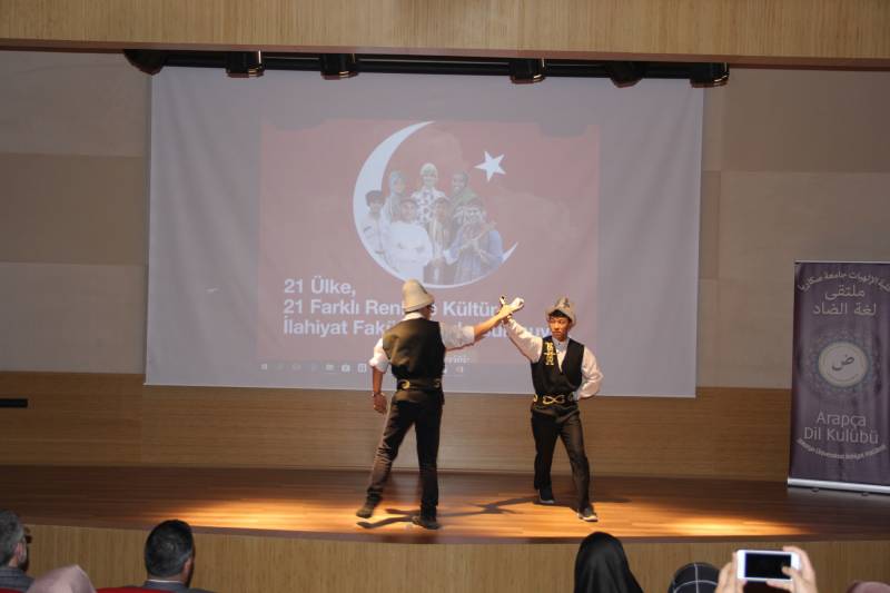 Daha sonra yabancı uyruklu öğrenciler sırasıyla sahne alarak ülke-kültür tanıtımları, farklı dillerden şiir ve geleneksel enstrüman dinletileri ve geleneksel danslar gerçekleştirdiler. Ayrıca İlahiyat Fakültesi Konferans Salonu fuaye alanında ülkeler adına açılan standlarda ülke tanıtımları yapılarak ziyaretçilere bilgiler verildi.
