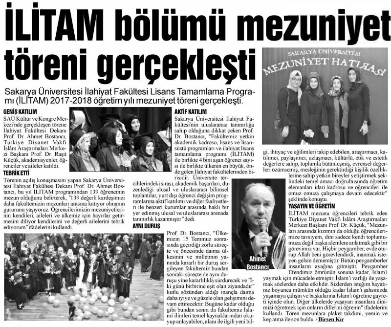 Fakültemiz İlahiyat ve İLİTAM bölümleri mezuniyet törenleri geniş bir katılımla gerçekleştirildi. Törenlerle ilgili ilgili basında çıkan haberlerin linkleri ve haberler aşağıdadır.