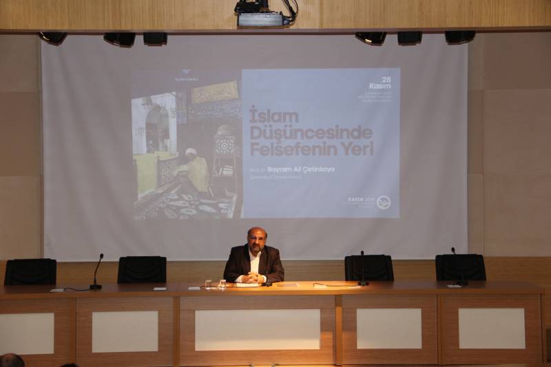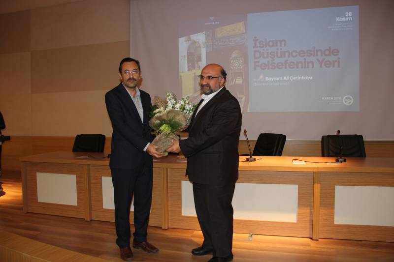 Felsefe, İslam ve düşüncenin bir araya gelmesi meselesinin kadim zamanlardan beri tartışıldığını söyleyen Prof. Dr. Bayram Çetinkaya: “İlim, hikmet ve irfan, birbirinden koparırsanız orada düşünce ortadan kalkar, düşüncenin temeli insanın kendisine ait olanı ifade etmesidir. İslam düşünce geleneğinde gerek kurumsal gerekse geleneksel eğitim müesseselerimizde zaten bu üç boyutun varlık bulduğunu ve devam ettiğini görüyoruz. Yani burada özgünlük önemlidir” dedi.