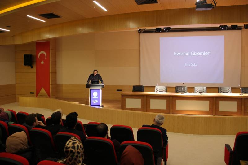 Fakültemizde Çarşamba Konferansları kapsamında İbn Haldun Üniversitesi Dr. Öğr. Üyesi Enis Doko tarafından verilen “Evrenin Gizemleri” konulu konferans yoğun bir katılımla gerçekleştirildi.