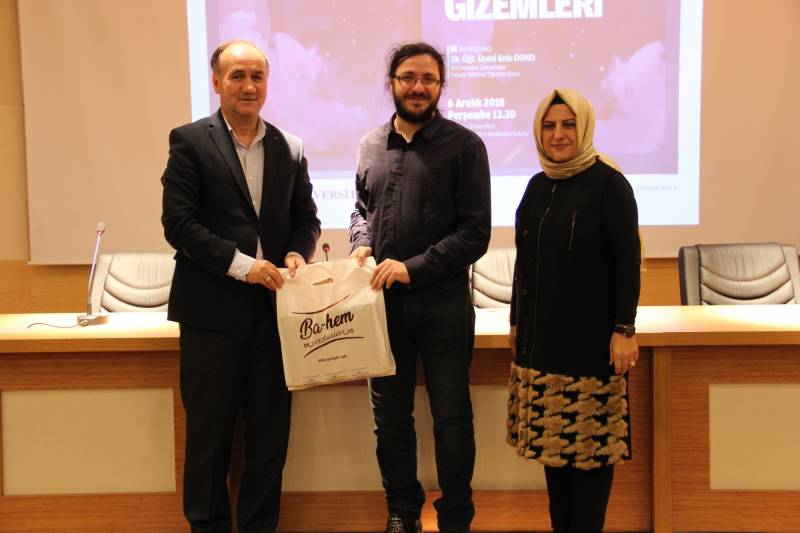 Dr. Öğr. Üyesi Enis Doko konuşmasının başında, “Bilim, doğa yasaları ya da doğal nedensellikle evreni açıklar. Ama bu yasaların niçin var olduğu bilimin konusu değildir. ‘Bu yasalar niye var?’, ‘bu yasalar niye bu şekilde?’ gibi sorular bilimin değil daha çok felsefenin alanına girer. Bu yüzden bugün konuşacağım bilimsel gizemler bu yasaların kendiyle ilgilidir. Yani bilimin açıklama iddiasında bulunmadığı, bulunmayacağı şeylerle ilgili olacak.” şeklinde konuştu.