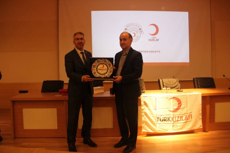 Durmuş, konuşmasının devamında Kızılay’ın tarihi, faaliyet alanları ve gençlik faaliyetleri hakkında bilgi verdi. Durmuş devamında “Hepimize dünyanın ihtiyacı var, iyi insanları çoğaltmaya hepimizin ihtiyacı var. Dünyada şu anda birisi gelse de bana Allah rızası için derman olsa, elimden tutsa diyen milyonlarca insan var. Ve Yaratanın bize yüklemiş olduğu da bir misyon var. Elimizden ne geliyorsa, elimizden gelmiyorsa dilimizle, duamızla bir insanın yanında olup elinden tutabiliyorsak, dünyanın neresinde bir mazlum varsa ona el uzatabiliyorsak, derdine çare olabiliyorsak işte o zaman gerçekten iyi bir insan, iyi bir kul da olabileceğimize inanıyorum” şeklinde konuştu.
