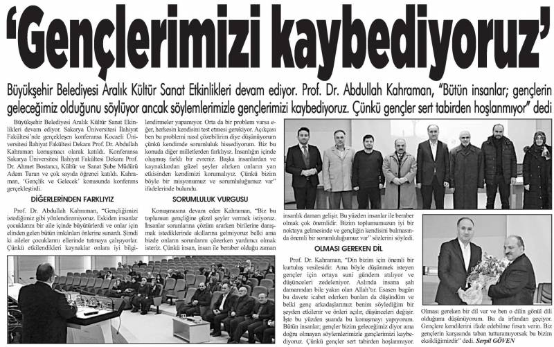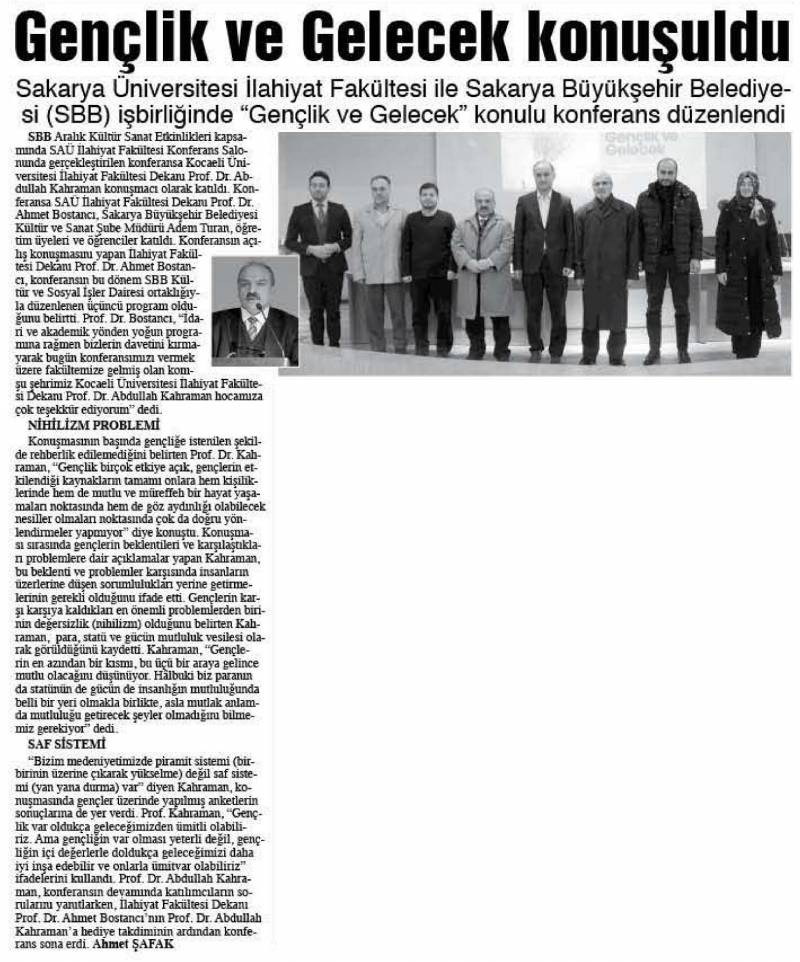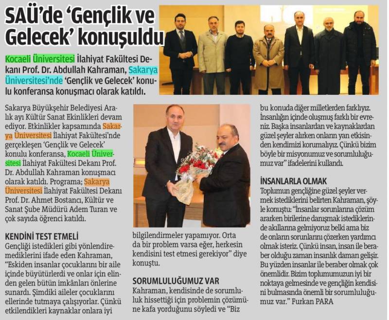 Kocaeli Üniversitesi İlahiyat Fakültesi Dekanı Prof. Dr. Abdullah Kahraman tarafından verilen "Gençlik ve Gelecek" konulu konferans Fakültemiz Konferans salonunda gerçekleştirildi.