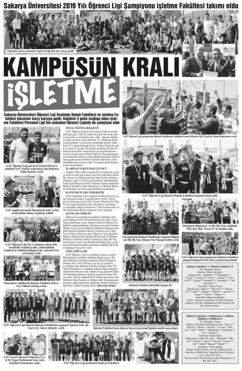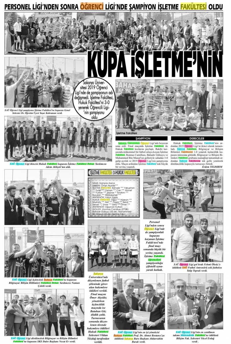 Futbol Takımımız Bilgisayar ve Bilişim Bilimleri Fakültesi’ni 1-0 yenerek SAÜ Öğrenci Liginde üçüncü oldu. Ayrıca öğrencimiz Fehmi Öksüz gol krallığını elde etti. Dekanımız Prof. Dr. Ahmet Bostancı da en iyi yöneticisi ödülünü aldı.