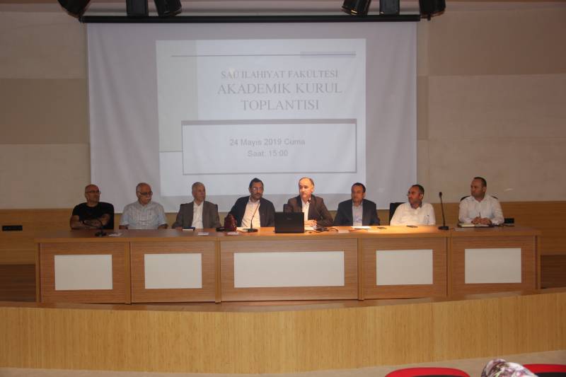 Fakültemiz Konferans Salonu’nda gerçekleştirilen 2018-2019 Öğretim Yılı yılsonu mutat Akademik Kurul Toplantısı’na Dekanımız, Dekan Yardımcılarımız, Bölüm Başkanlarımız ve öğretim elemanlarımız katıldı. Toplantıda konuşan Dekanımız Prof. Dr. Ahmet Bostancı, başarılı bir öğretim yılını geride bıraktıklarını söyledi ve bu öğretim yılında 38 öğrencilerinin değişim programları kapsamında Malezya, Ürdün, Fas, Katar ve Almanya’da öğrenim gördüğünü, Ürdün Yaz Kursuna gidenlerle beraber bu sayının daha da artacağını ifade etti. Öğretim yılı boyunca 2si uluslararası sempozyum ve 2si de çalıştay olmak üzere 40 tane ders dışı akademik ve kültürel etkinlik düzenlediklerini söyleyen Prof. Bostancı, öğrenci toplulukları tarafından da pek çok faaliyet gerçekleştirildiğini ilave etti. Bostancı ayrıca 2018-2019 öğretim yılında fakültede gerçekleşen personel hareketliliği ve Fakülte tanıtımı için yapılan faaliyetler gibi. hususlarda bilgiler verdi.