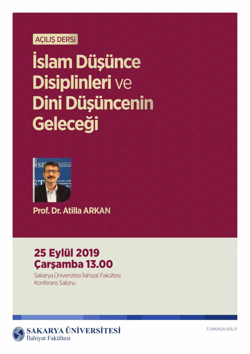 Prof. Dr. Atilla Arkan tarafından verilecek olan “İslam Düşünce Disiplinleri ve Dini Düşüncenin Geleceği” konulu 2019-2020 öğretim yılı açılış dersi 25 Eylül 2019 Çarşamba günü saat 13:00’de Konferans Salonumuzda gerçekleştirilecektir
