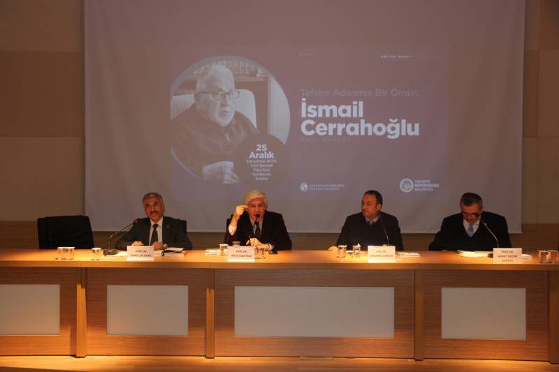 Fakültemiz öğretim üyesi Doç. Dr. Ali Karataş’ın moderatörlüğünde gerçekleştirilen panelin ilk oturumda, İsmail Cerrahoğlu’nun kızı Dr. Öğr. Üyesi Hatice Teber, Prof. Dr. Sadık Kılıç ve Prof. Dr. Muhammed Aydın konuşmacı olarak yer aldı. Doç. Dr. Gökhan Atmaca moderatörlüğünde gerçekleştirilen ikinci oturumda ise Prof. Dr. Halis Albayrak, Prof. Dr. Ahmet Nedim Serinsu, Prof. Dr. İsmail Çalışkan konuşmacı olarak bulundu. Konuşmacılar, Prof. Dr. İsmail Cerrahoğlu’nun tefsir ilmine katkıları, bilim insanı olarak ve ahlaki açıdan nitelikleri, kendisiyle hoca-talebe ilişkisi çerçevesindeki yaşamış oldukları anılar hakkında değerli bilgiler verdiler.