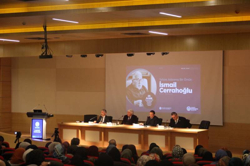Rektörümüz Prof. Dr. Fatih Savaşan ise konuşmasında “İsmail Cerrahoğlu hocamız gibi değerli büyüklerimizin hayattayken onurlandırılması ve bizim faydamıza sunulması çok önemli” diyerek programın hayırlara vesile olmasını diledi.