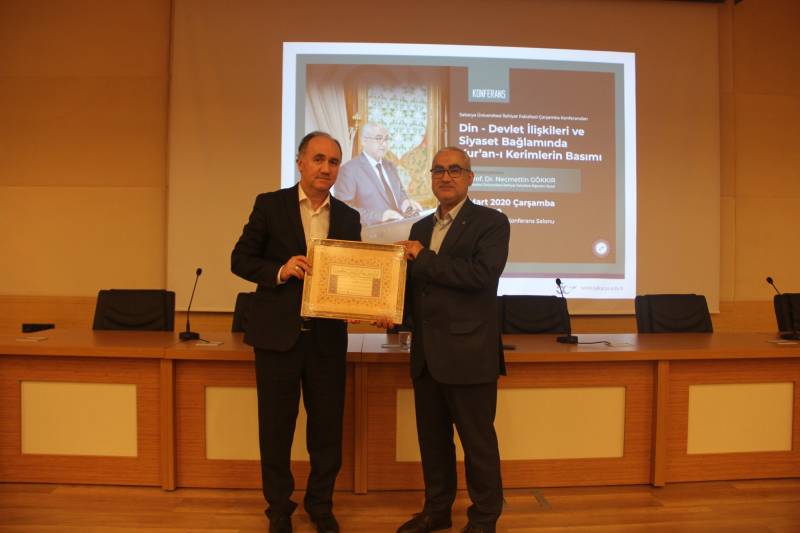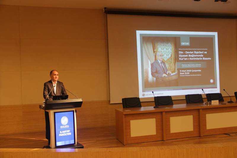 Fakültemiz Geleneksel Çarşamba Konferansları kapsamında gerçekleştirilen programda Prof. Dr. Necmettin Gökkır tarafından “Din-Devlet İlişkileri ve Siyaset Bağlamında Kur’an-ı Kerimlerin Basımı” başlıklı bir konferans verdi.