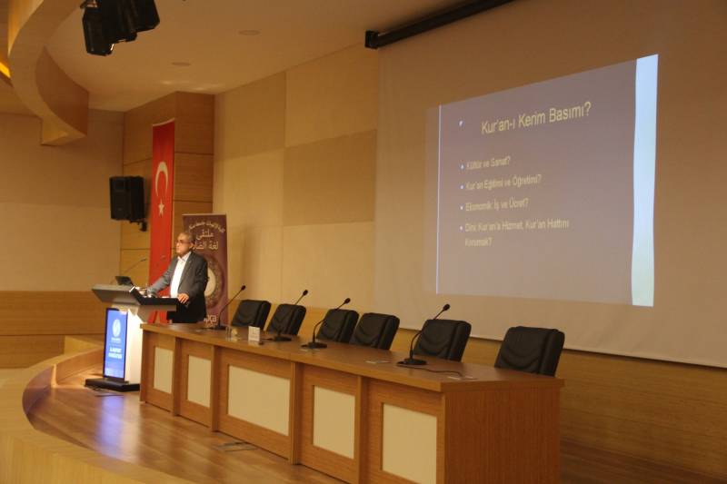 Konferans boyunca Prof. Gökkır, Kur’an-ı Kerim basımının Osmanlı’nın Batı devletleri ile diplomatik ilişkilerinde nasıl bir yer ettiğini dönemin gazete haberleri ve Osmanlı belgeleri ışında ortaya koyup Kur’an-ı Kerim’lerin basılmasındaki siyasi anlamın günümüzde hangi boyuta ulaştığını değerlendirdi.