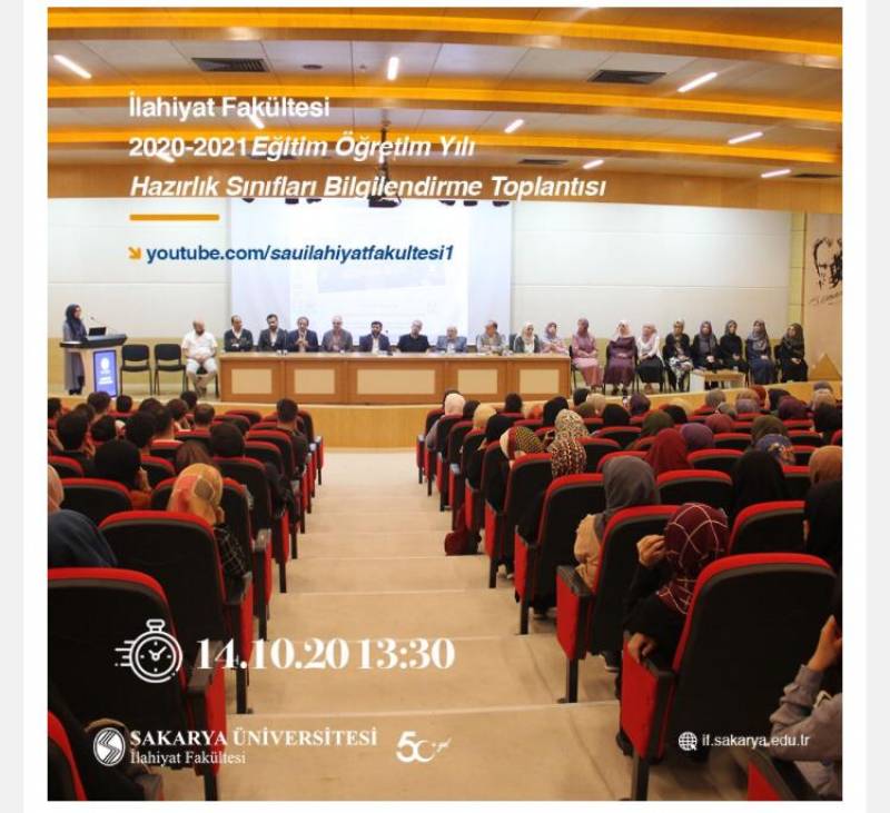 Hazırlık sınıfı eğitimi ile ilgili ayrıntılı bilgi paylaşımı yapılacak olan Hazırlık Sınıfları Bilgilendirme Toplantısı 14 Ekim 2020 Çarşamba günü saat 13:30’da YouTube kanalımız (www.youtube.com/sauilahiyatfakultesi1) üzerinden canlı olarak yayınlanacaktır.