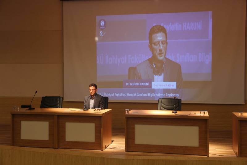 Devamında konuşan Temel İslam Bölüm Başkanımız Prof. Dr. Süleyman Akkuş, konuşmasında Arapçayı iyi bir şekilde öğrenmenin İlahiyat Fakültesindeki diğer alanlarda başarılı olmanın anahtarı olduğuna dikkat çekti. Hazırlık Sınıfları Koordinatörümüz Doç. Dr. Hamza Ermiş, hazırlık sınıfındaki dersler hakkında, Öğr. Gör. Hülya Afacan da hazırlık sınıfında uygulanacak kur sistemi ve sınavlar hakkında bilgi verdiler. Fakülte Arapça Dil Kulübü’nün (Mültekâ Luğati’d-dâd) yaptığı etkinlikleri içeren bir video gösteriminin ardından hazırlık sınıfında derse giren hocalar kendilerini tanıtarak öğrencilere önemli tavsiyelerde bulundular.