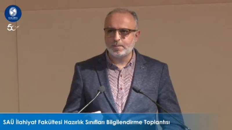 Sunuculuğunu Öğr. Gör. Abdulmelik Yangın’ın yaptığı ve Öğr. Gör. Dr. Seyfettin Haruni’nin Kur’ân-ı Kerîm tilavetiyle başlayan programın açılış konuşması, Dekanımız Prof. Dr. Ahmet Bostancı tarafından yapıldı. Prof. Dr. Bostancı konuşmasının başında yeni eğitim-öğretim yılının öğrenciler ve hocalar için hayırlı olması temennisinde bulundu. Her yıl yüz yüze yapılan tanışma ve bilgilendirme toplantısının pandemi dolayısıyla bilgilendirme ağırlıklı olarak canlı yayınla gerçekleştirildiğini kaydeden Prof. Bostancı, öğrencilere “Kim ilim talep etmek için bir yola girerse Allah Teâlâ ona cennete giden yolu kolaylaştırır” hadis-i şerifini hatırlarında tutarak yola başlamaları tavsiyesinde bulundu ve muvaffakiyetler diledi. SAU İlahiyat Fakültesi’nin Türkiye’de yüksek puanla öğrenci alan İlahiyat Fakültelerinden biri olduğunu kaydeden Prof. Bostancı, yeni öğrencilere tercihleriyle fakültelerine olan güveni bir kez daha ortaya koymaları sebebiyle teşekkürlerini iletti. Dekanımız Prof. Dr. Ahmet Bostancı, “Fakültemiz her alanda olduğu gibi Arapça eğitimi alanında da iddialı bir fakülte. Çok değerli hocalarımız var. Hazırlık Koordinatörümüz Doç. Dr. Hamza Ermiş hocamızın önderliğinde çok büyük gayretler sarf ediyorlar. Kendilerine ayrı ayrı teşekkür ediyorum. İnsallah bu gayretlerini bu yıl da sürdüreceklerdir.” şeklinde konuştu.