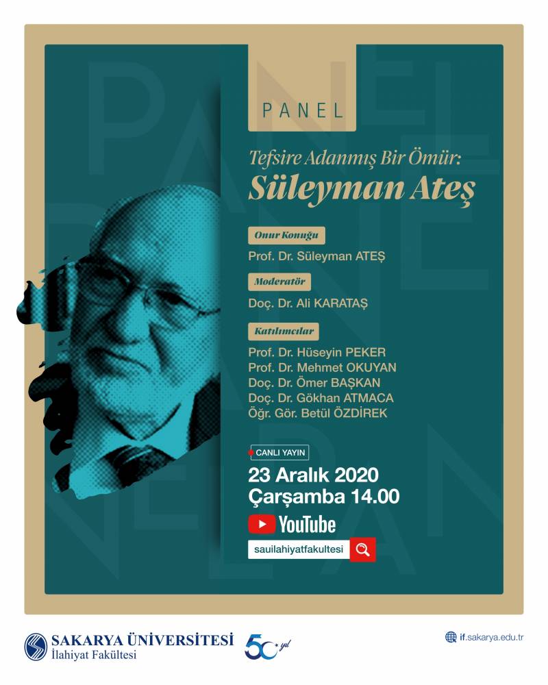 Tefsir alanının duayen isimlerinin onur konuğu olduğu programlarımızın ikincisi, Tefsire Adanmış Bir Ömür: Süleyman Ateş paneli 23.12.2020 Çarşamba günü Saat: 14:00’te YouTube kanalımızdan (www.youtube.com/sauilahiyatfakultesi) canlı yayınlanacaktır.